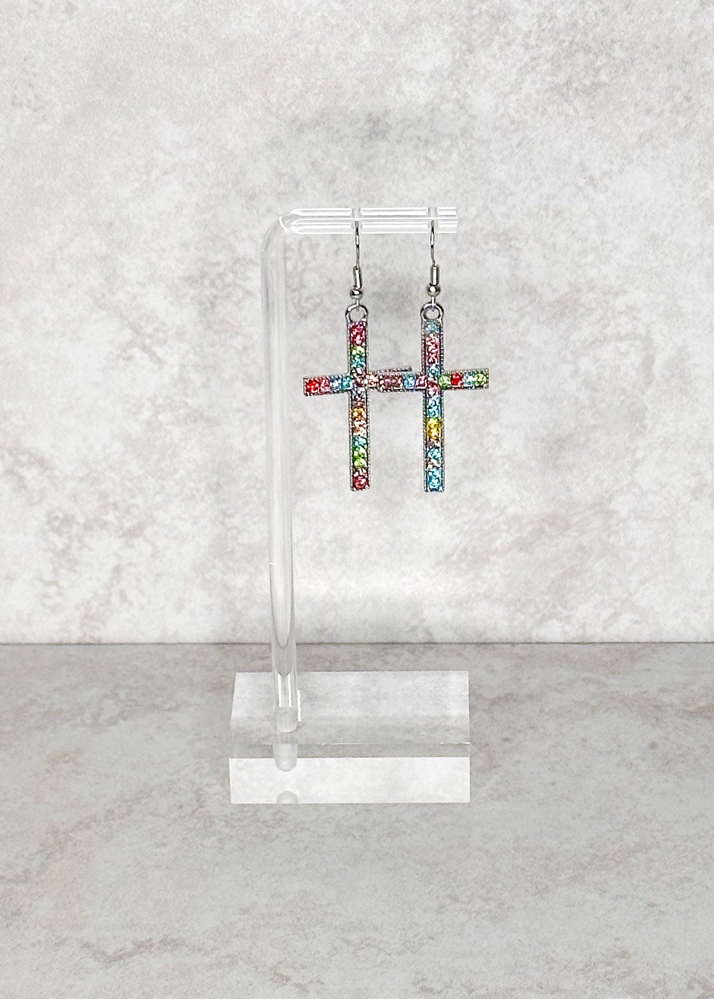 Colorful Cross Earrings - Silver