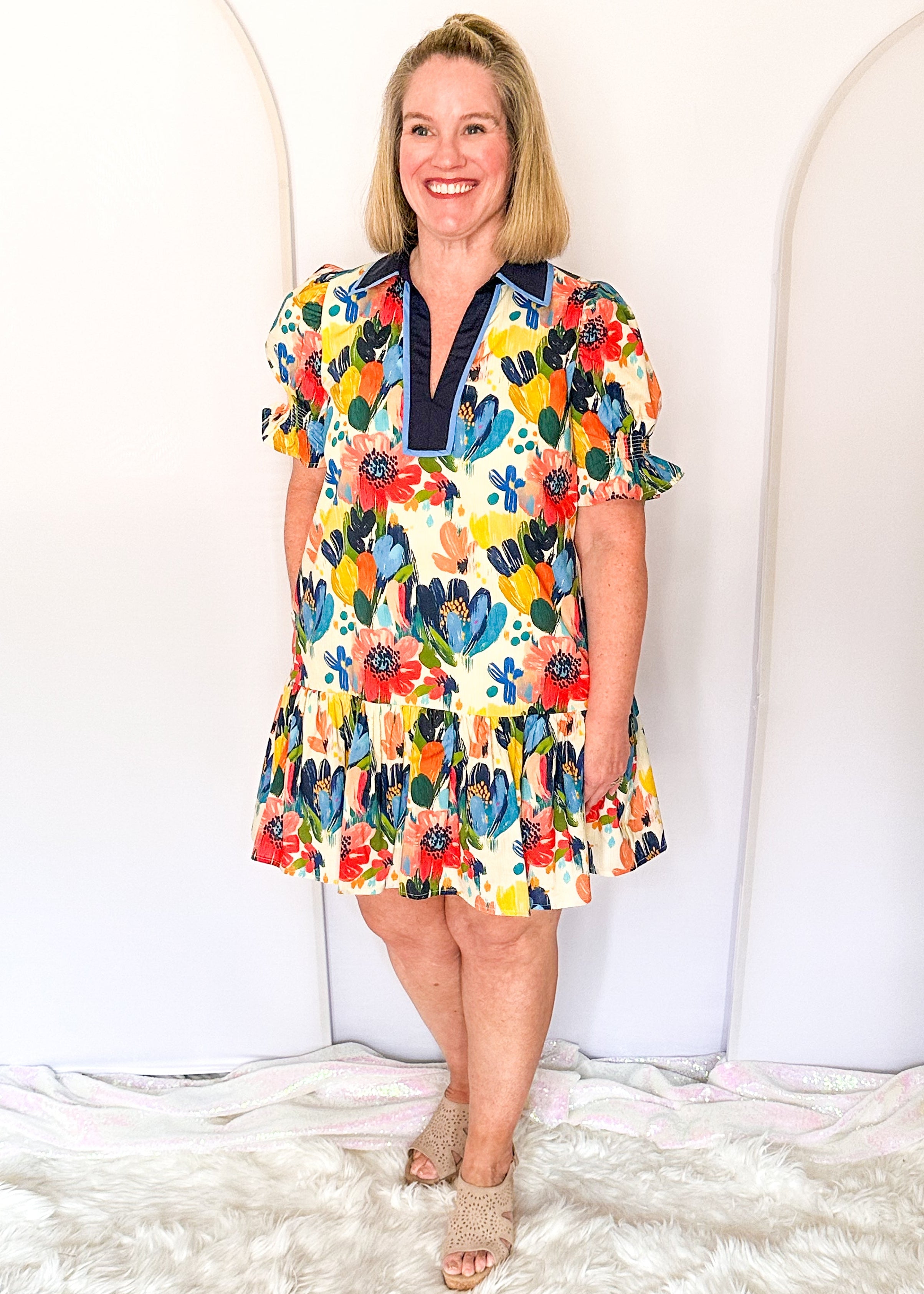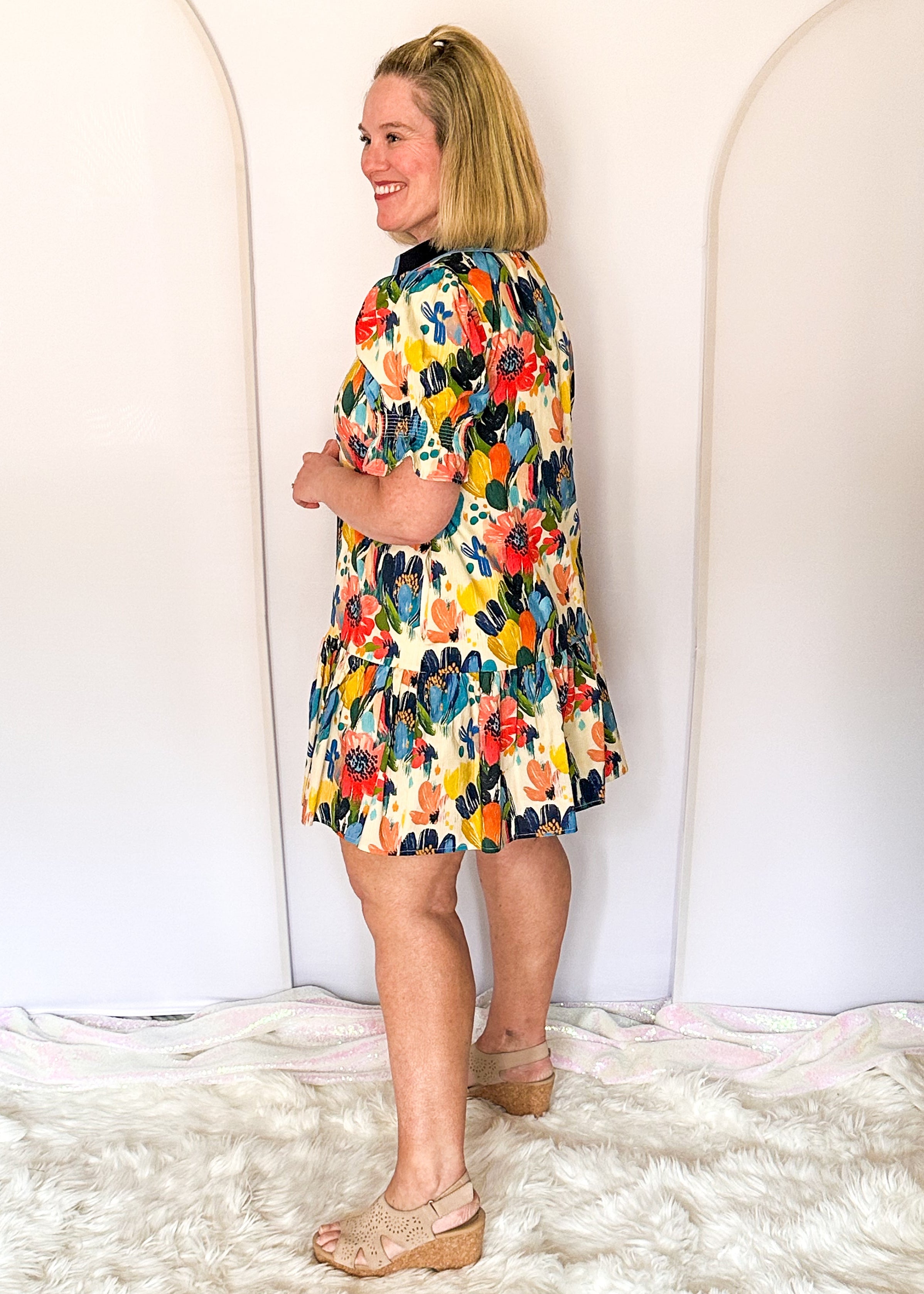 Gorgeous watercolor floral? Check. Fully lined so it’s not see-through? Thank you. Pockets because we’re practical people, yes please! It’s fun and flattering.