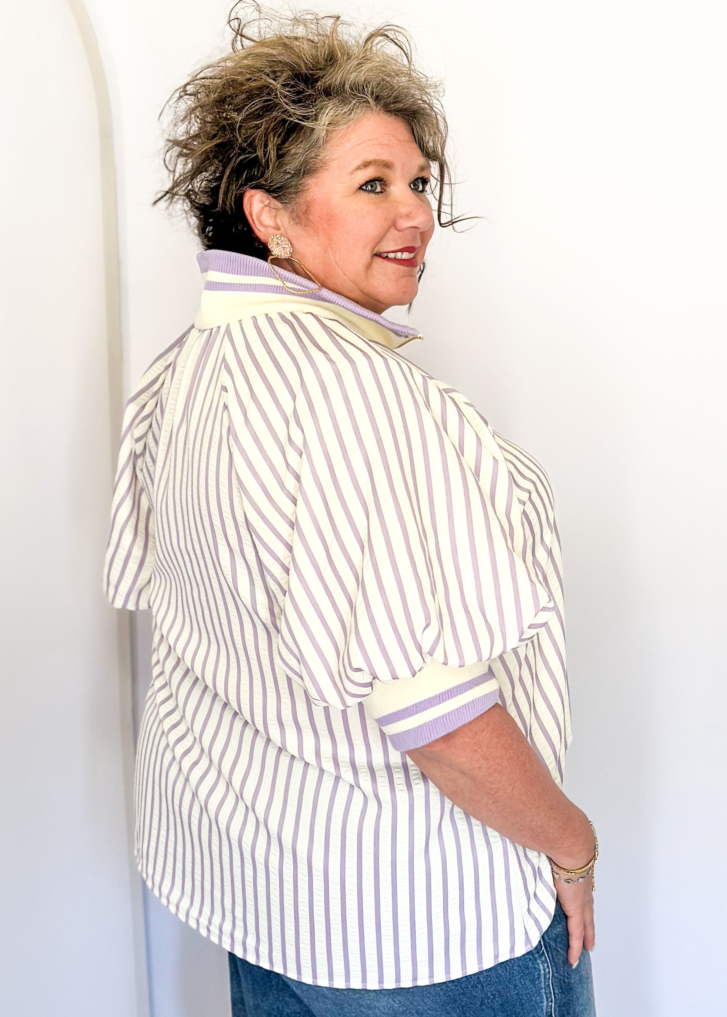 This is the top that does the most with minimal effort. The striped design keeps it timeless, the 1/4 zip adds function and style. Dress it up, dress it down, wear it on repeat. Available in Lavender, Blue, Pink, and Red.
