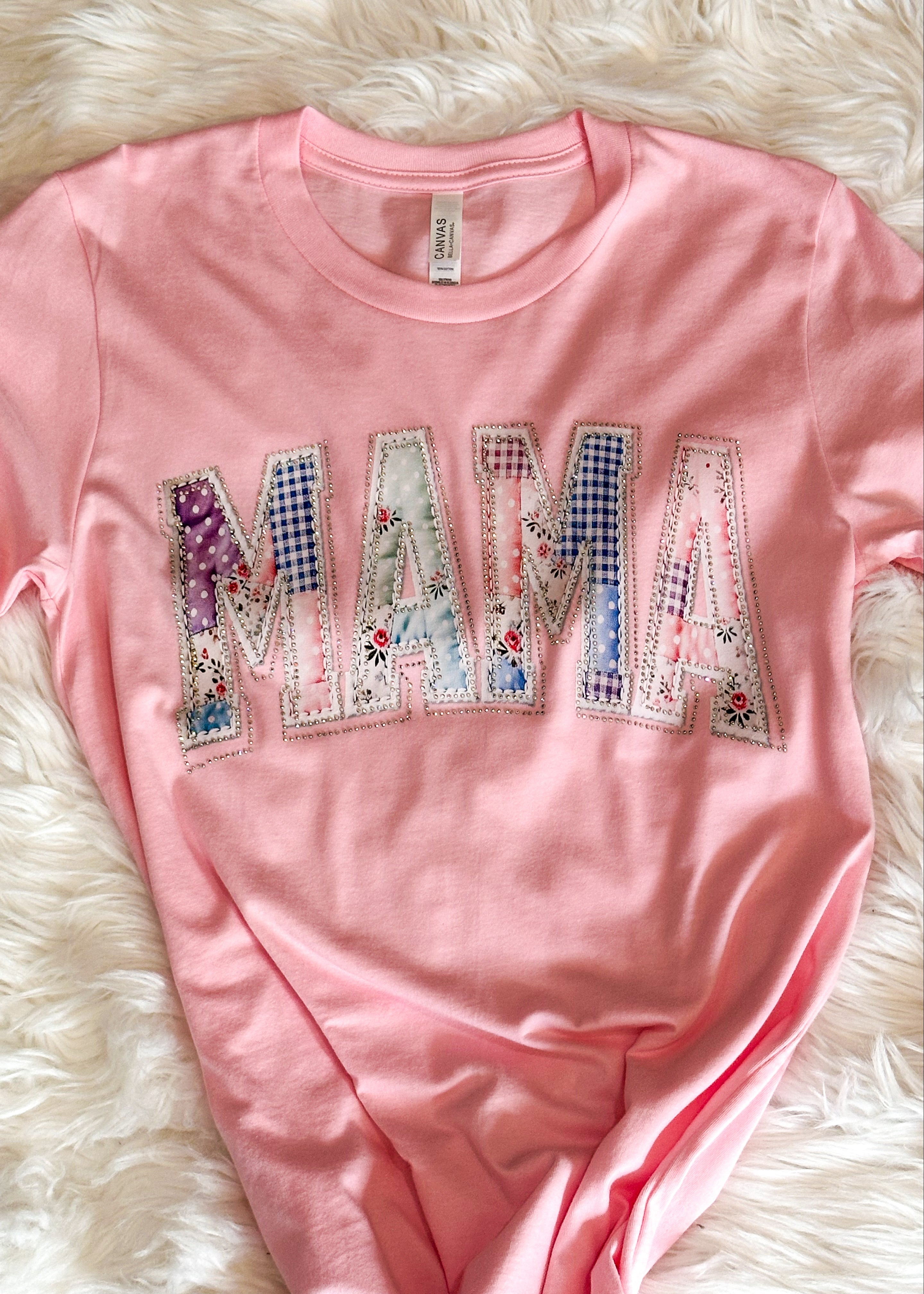 Mama Pink Patchwork Rhinestone Graphic Tee