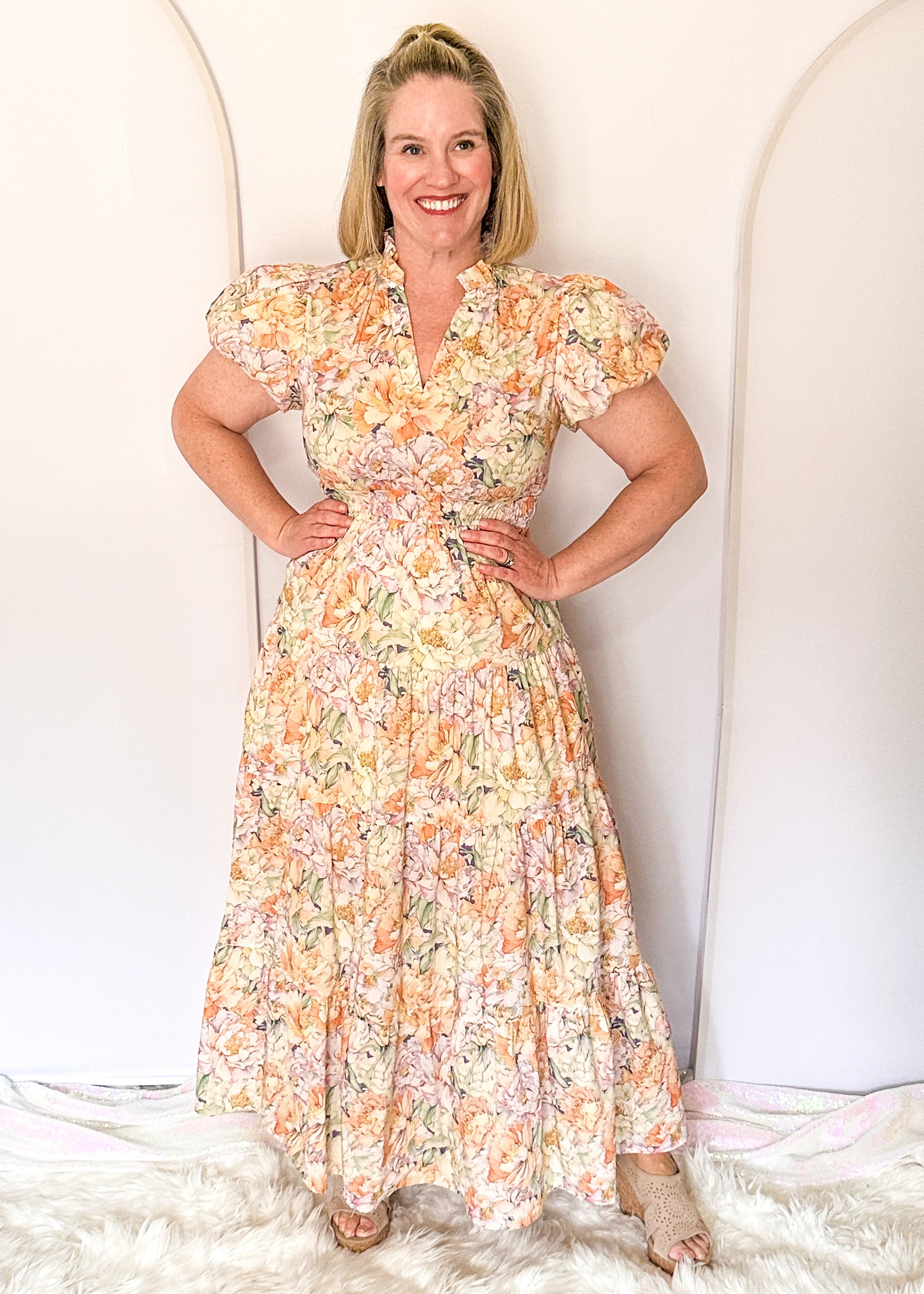 Delicate florals and a relaxed silhouette come together in this effortless maxi. It drapes beautifully, feels light on the body, and gives you that calm, comfortable, and confident energy. A true wear-on-repeat maxi.